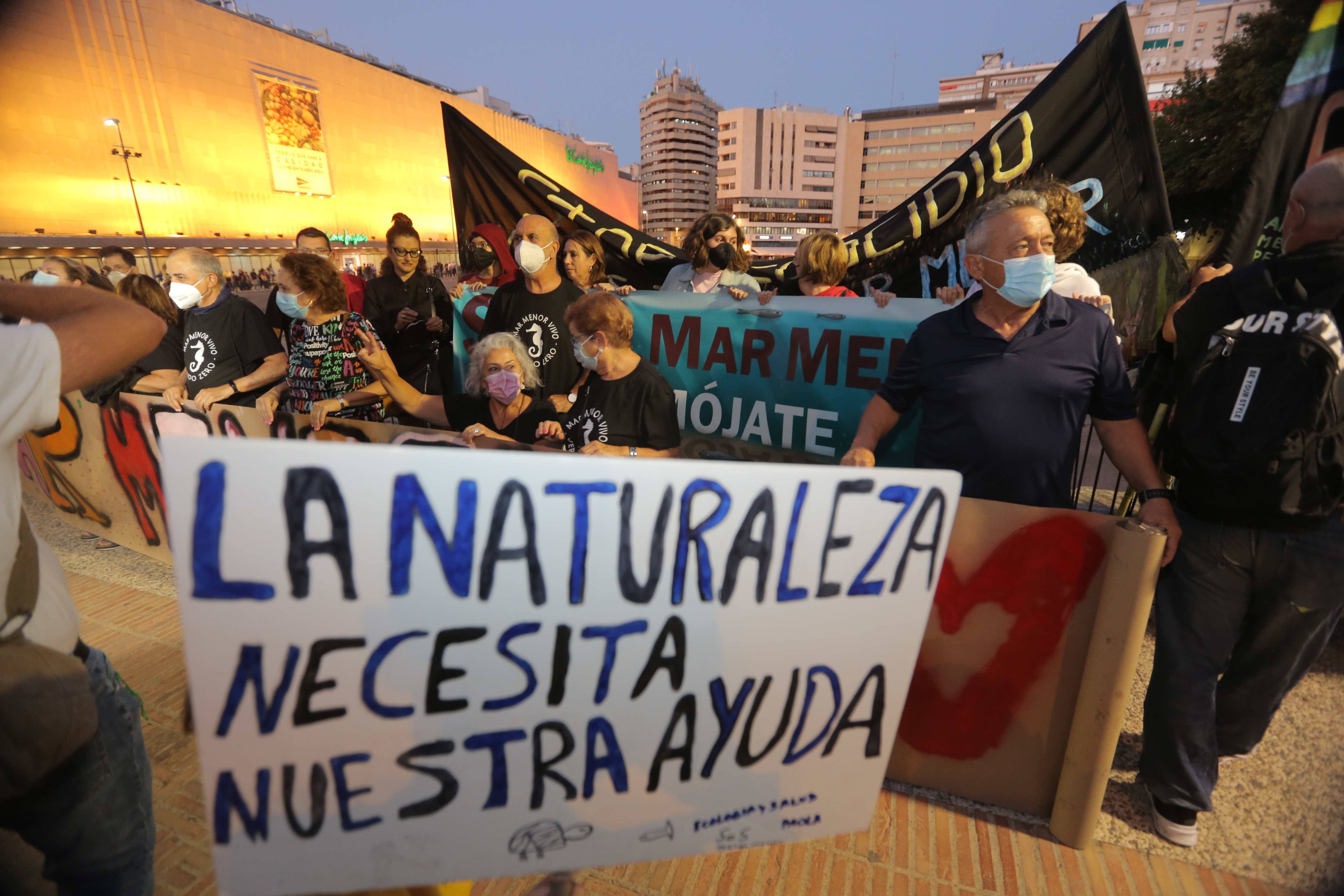 Pero las críticas no van solo dirigidas al Gobierno regional, de cuyo presidente, Fernando López Miras, los manifestantes han pedido la dimisión. La marcha ha partido a las 20.00 de forma simultánea de la sede de la Delegación del Gobierno central en la Región de Murcia y del Palacio de San Esteban, sede de la presidencia del Gobierno autonómico. Entre los asistentes estaba Ramón Pagán, de la Plataforma Pacto por el Mar Menor, que considera fundamental que se cumpla la ley que ya está en vigor para proteger la laguna y que limita el uso de fertilizantes, porque no se está aplicando. Pedro Luengo, presidente de Ecologistas en Acción en la Región de Murcia ha reivindicado también la eliminación inmediata de las 8.000 hectáreas de regadíos ilegales que hay en la zona, que ya se podría haber llevado a cabo tanto por el Gobierno regional como por el central y, sin embargo, no se ha actuado.
