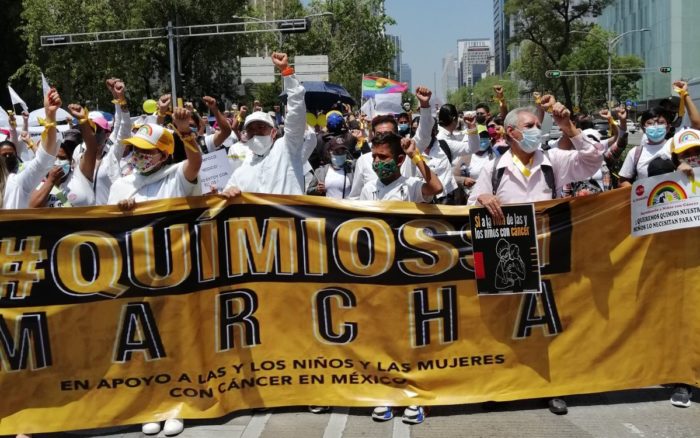 Este sábado varios miles de personas de distintos estados de la República marcharon sobre Avenida de la Reforma, en la Ciudad de México, para protestar por el desabasto de medicamentos oncológicos en el país.