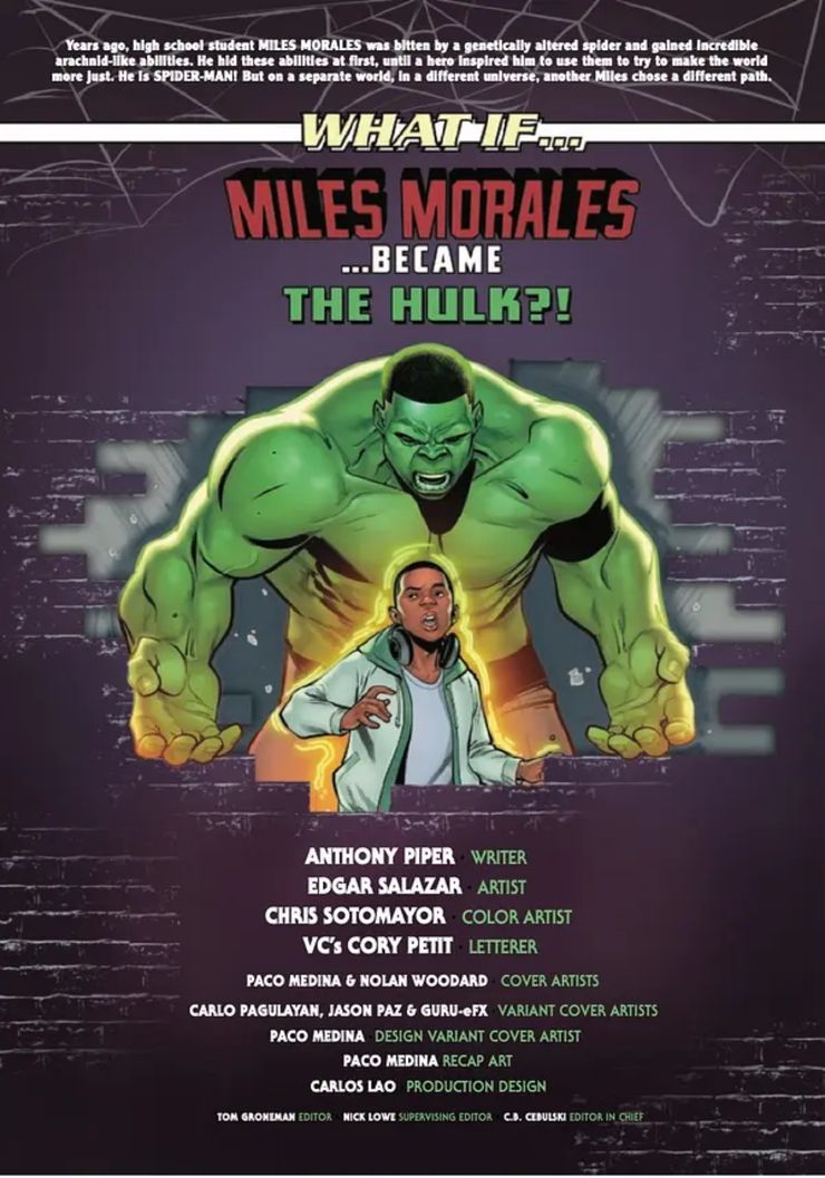 Miles Morales se convierte en Hulk como nuevas páginas de vista previa de What If… Miles Morales #3 se burlan de la transformación del joven héroe en el Gigante de Jade.