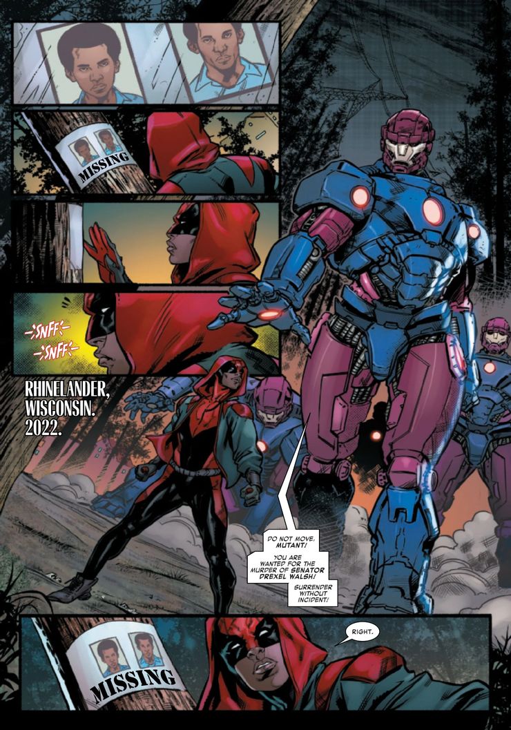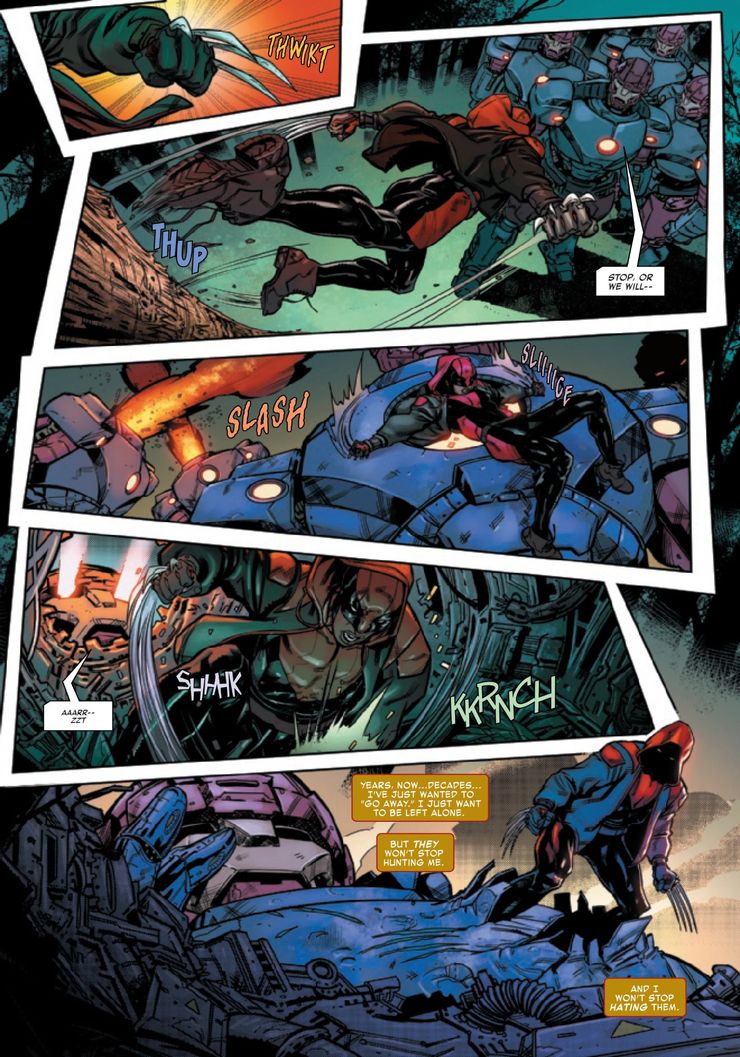 En una nueva vista previa de Y si…? Miles Morales … se convirtió en Wolverine (H/T CBR) de John Ridley, Farid Karami, Chris Sotomayor y Cory Petit de VC, los lectores son llevados a Wisconsin, donde los Sentinels están cazando a Miles Morales. Las gigantescas máquinas cazadoras de mutantes le dicen a Miles’ Wolverine que se rinda, ya que lo buscan por la muerte del senador Drexel Walsh. Sin embargo, Wolverine no cede y destroza a los Centinelas con sus garras. Luego, en un monólogo, Wolverine admite que quiso estar solo durante décadas, pero ahora, los Sentinels no dejarán de perseguirlo, y él no dejará de odiarlos.