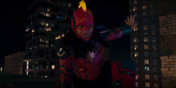 Kamala es lo más parecido que tiene el MCU a un verdadero sustituto de la audiencia. Todos los fanáticos de Marvel pueden verse a sí mismos en Kamala porque ella es una fanática de Marvel en el universo. Tiene un canal de YouTube lleno de ensayos en video sobre sus Vengadores favoritos.