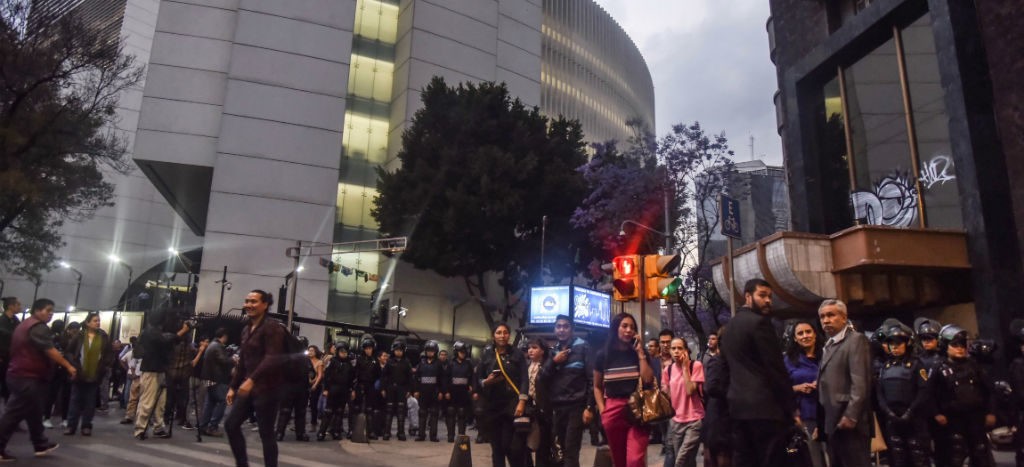 Aproximadamente 50 personas evitaron la entrada y salida de personal del Senado, así como de todos los vehículos a dicho recinto, en donde a partir de las 17:00 horas estaba programado continuar con el debate sobre la cancelación de la reforma educativa establecida por el gobierno federal anterior.