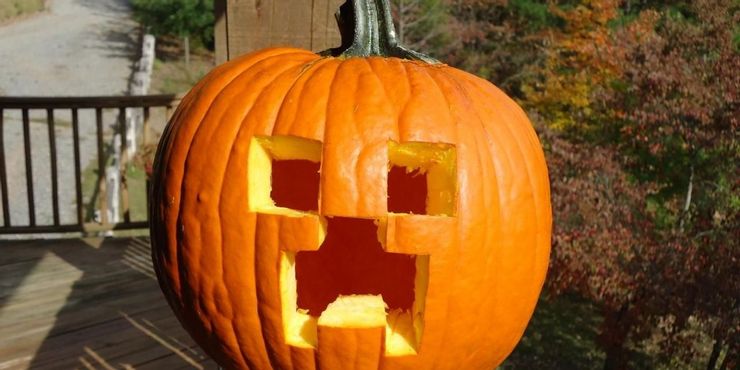Afortunadamente, Minecraft también ofrece a los fanáticos una divertida actividad de temporada que no requiere compras en línea. MinecraftLa actualización de noticias del Spookyfest, publicada el 1 de octubre de 2021, incluye Minecraft máscaras y plantillas para tallar Minecraft calabazas