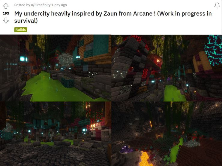 Un jugador dedicado de Minecraft está trabajando para recrear la atmósfera subterránea de Zaun de la amada serie de Netflix de League of Legends, Arcane.