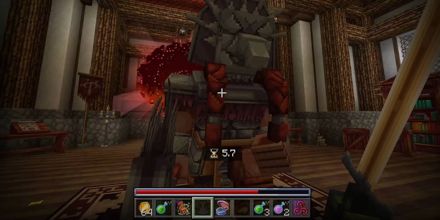 El ataque más peligroso al que hay que prestar atención es el del Juggernaut. movimiento de guadaña giratoria, que cubre todo el cuerpo del jefe y derriba a tu personaje causando un daño enorme. El cultista gigante en Minecraft puede también tirar una piedra hacia tu personaje, lo que puede ser difícil de evitar si estás parado frente al jefe. Asegurate que Usa pociones para curar a tu personaje. sólo cuando estés al borde de la muerte, para que puedas conservarlos por más tiempo.