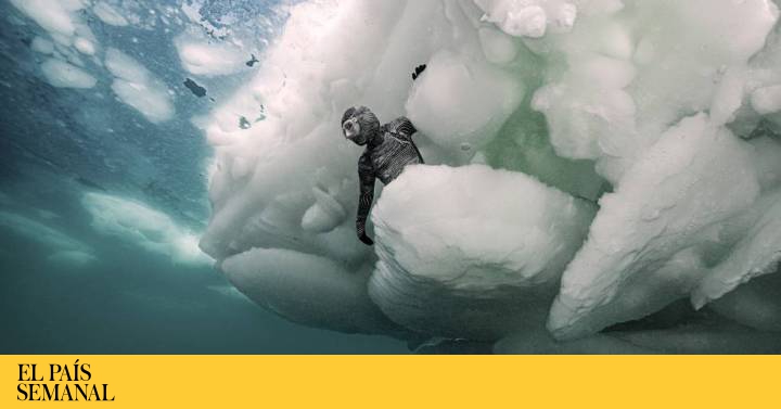 ver fotogaleríaMientras la fotógrafa buscaba y retrataba la belleza natural —“podría haberme pasado 15 días retratando esas formas sinuosas, como nubes, como cuevas”, afirma—, Ai Futaki nadaba como un pez en aquel mar helado con un simple traje húmedo y a pulmón, a -6 grados, bajando y subiendo sin parar para coger aire. Aunque suele quedarse largo tiempo bajo el agua, en esta ocasión prefirió moverse más, respirar más veces para seguir activa, mantener el calor y no perder mucho tiempo en recuperar el aliento, cuenta la buzo, que se considera una mensajera, un puente entre el mar y los humanos. Se había preparado durante todo el invierno nadando únicamente con bañador en el mar cerca de Tokio, donde reside. Pero hacerlo bajo el hielo planteaba nuevos retos: “Había trozos grandes y pequeños, como hielo escarchado”. Y no siempre quedaba claro dónde quedaba el mejor hueco para salir a superficie. “Yo subía como superwoman, con una mano por delante, para apartar o romper cualquier cosa que me pudiera encontrar al llegar arriba”. Una de las imágenes de la selección de estas páginas la muestra precisamente en ese gesto volador.