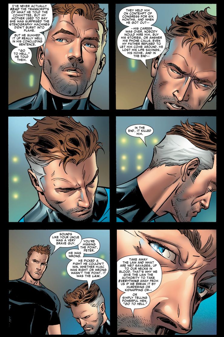 Mientras todo esto sucede, Mister Fantastic está operando con una capacidad verdaderamente inquietante, desarrollando instalaciones penitenciarias en la Zona Negativa para todos los superhéroes rivales. Sus acciones son incluso más retorcidas que la interpretación extrema de Iron Man de sus propias responsabilidades como héroe, ya que su prisión conlleva una sentencia de cadena perpetua en condiciones a menudo tortuosas. Cuando Spider-Man, un partidario inicial del registro, exige ver cómo se trata a los prisioneros en Amazing Spider-Man Vol 1 # 535 de J. Michael Straczynski y Ron Garney, descubre que los diseños y las motivaciones de Richards son descaradamente autoritarios. La justificación casual de Richards del macartismo y el maltrato de su amado tío, simplemente porque era la ley, muestra que Mr. Fantastic cruza la línea más grande en Civil War. Mientras que Iron Man cree que tiene razón moralmente y actúa desde un lugar de dolor personal, a Reed no le importa la moral y, en cambio, acepta la noción de que el gobierno debe tener el control total. Aunque el mayor defecto de Reed es perseguir imprudentemente lo desconocido, este es un caso en el que estar convencido de lo que sabe lo convierte en un villano.