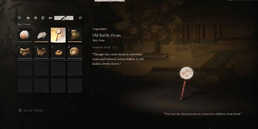 Viejo tambor sonajero La llave es un objeto que se obtiene al derrotar al jefe Acólito del Tigre. Después de derrotar al Acólito del Tigre y recoger la llave del tambor de sonajero antiguo, Viejo tambor sonajero Comienza la misión. Escucharás la voz de un niño que te llamará a tres áreas diferentes donde tocarás el instrumento. Las áreas son: