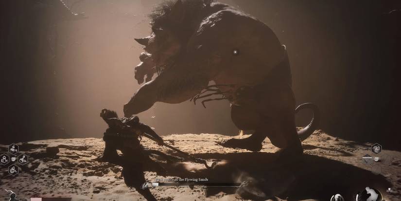Si bien el Primer Príncipe de las Arenas Fluidas puede parecer amenazante al principio, es extremadamente fácil esquivar o engañar a sus ataques. Con suficiente práctica, puedes salir de la batalla con poco o ningún daño. Esto hace que sea una pelea relativamente simple en comparación con las brutales batallas en Mito negro: Wukong.