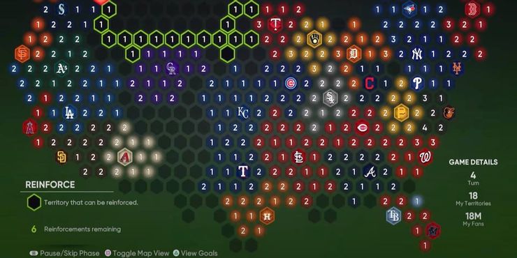 MLB: el espectáculoEl modo Conquista de es una de las adiciones más interesantes al juego y ofrece un elemento de juego de mesa. Aunque es divertido, Conquest también puede consumir mucho tiempo debido a sus largos tableros de juego. El usuario de Reddit, giantswillbeback, esperaba mejorar el juego sugiriendo “simulación automática hacia ciertas áreas del mapa para la conquista”.