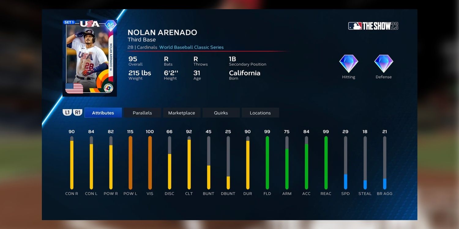 Arenado también juega una posición de esquina crucial en lo que respecta a la defensa, en la que también sobresale. Su alta estadística de fildeo y alcance le permitirá agarrar cualquier pelota que se le ponga en el camino, con estadísticas de lanzamiento complementarias que lo ayudarán a hacer el tiro largo a la primera base. Sin embargo, si es necesario, Arenado también puede pasar a primera base y no pierde mucho valor, si es que pierde alguno.