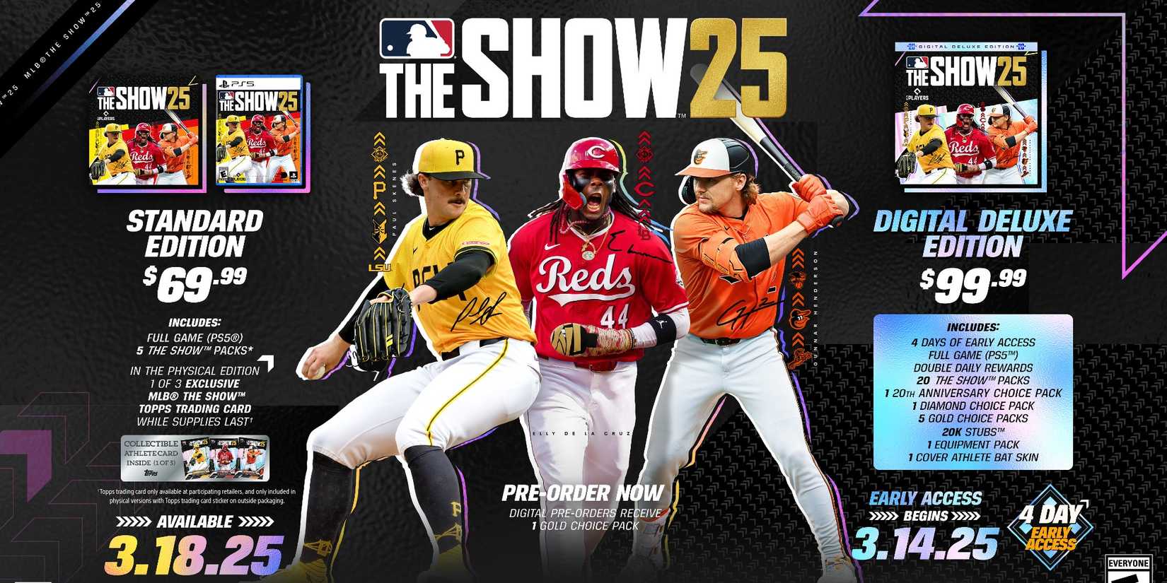 Cualquiera que preordene MLB el espectáculo 25 Se asegurará de que obtendrán el juego en el momento en que salga. Los bonos de este año para reservar son bastante bajos. Solo hay un bono que se aplica a cada pedido anticipado: no importa qué jugadores de edición preordenan, Desbloquearán un paquete de Oro Choice como recompensa de pedido anticipado.
