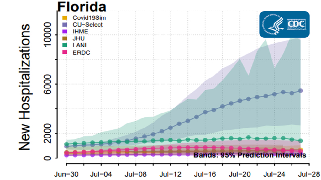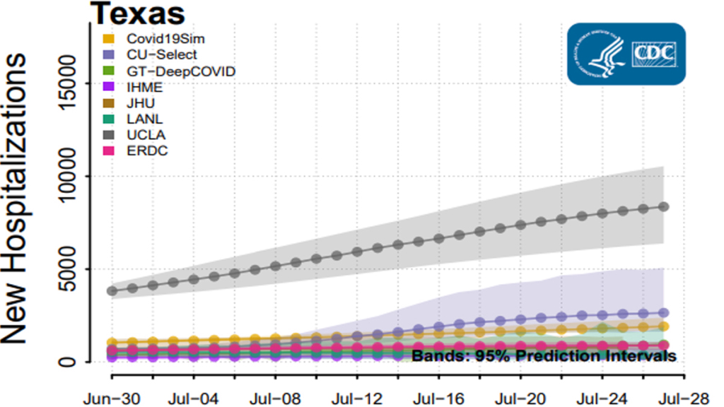 De acuerdo con los CDC, de los siete modelos de pronóstico usados diariamente por el gobierno, cuatro de ellos muestran un alza considerable durante este mes de julio.