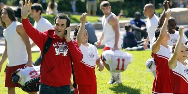 Mientras está en la oficina del decano, recibe una llamada y, al estilo de Phil, pregunta: “¿Dónde estaban los estudiantes del último año de los Nacionales?” Respondiendo rápidamente “Cleveland, Oh … ¡Hola!” Esto irrita a Phil, lo que lo lleva a preguntarle a Claire si podría “imaginarse aguantando esto durante años y años”. Por supuesto, pone los ojos en blanco, ya que Phil literalmente lo ha hecho muchas veces a lo largo de la serie.