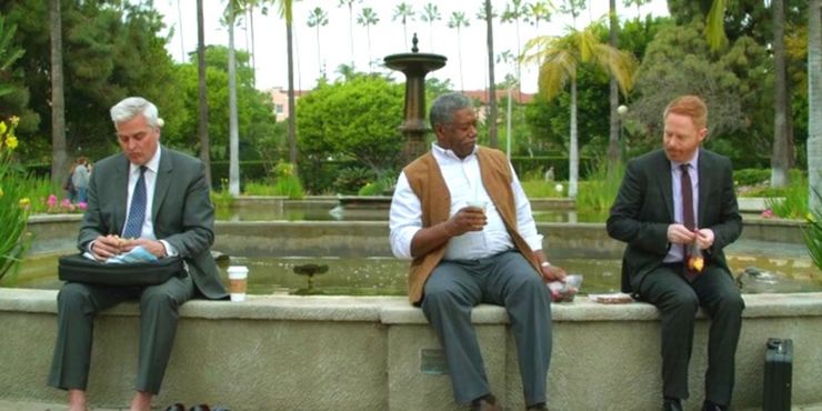 Mitchell tuvo su parte justa de trabajos a lo largo Familia moderna pero cuando perdió un trabajo, estaba perdido. Como sostén de la familia, Mitchell no se sentía cómodo diciéndole a Cam que perdió su trabajo y que podrían sufrir económicamente. En lugar de contarle a Cam lo que pasó, fingió que iba a trabajar todos los días, pero en su lugar fue al parque.