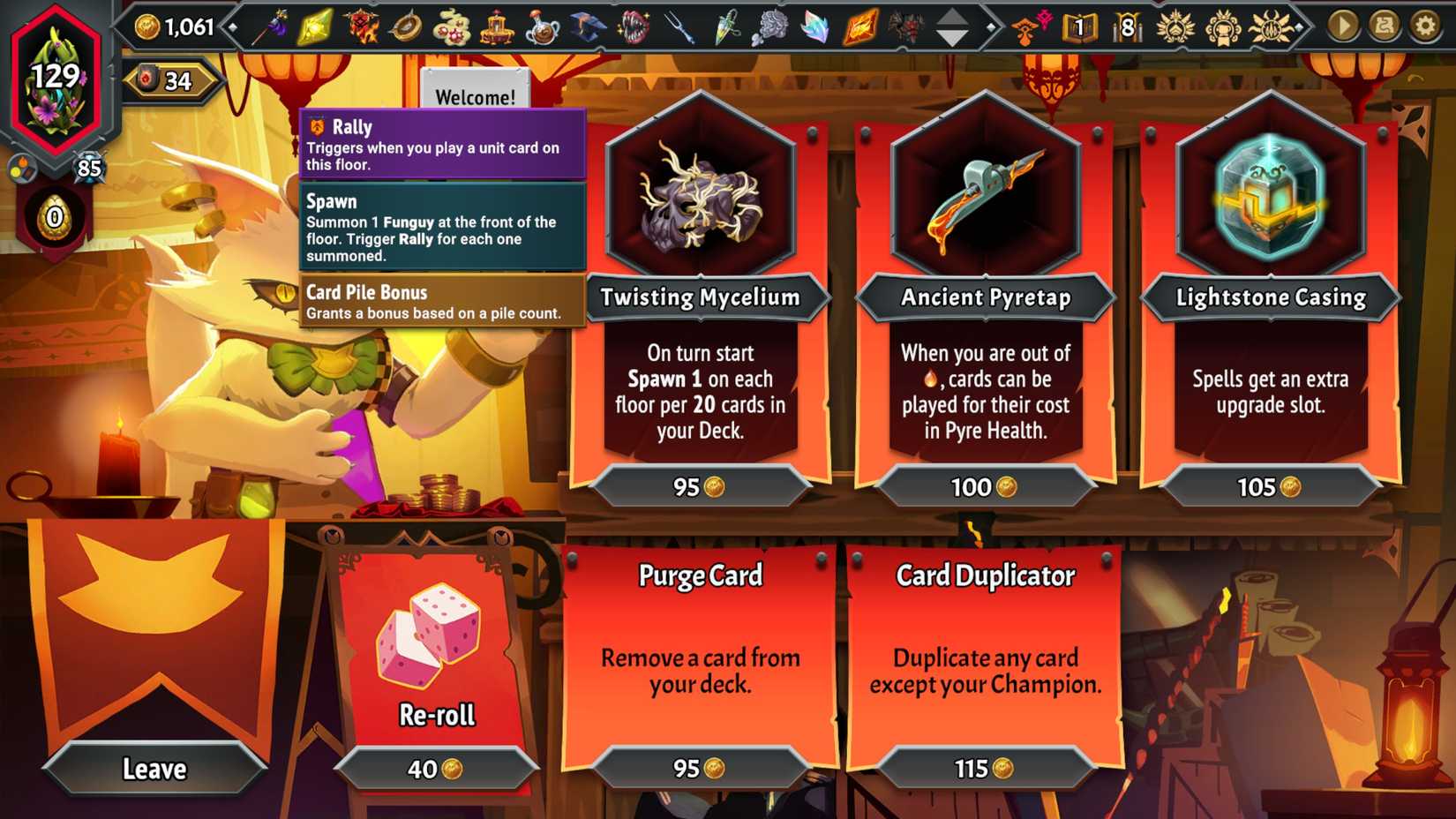 Tarjetas de equipocomo las nuevas habilidades de campeón, son ciertamente poderosos en Monster Train 2. El equipo se puede conectar a unidades y puede crear sinergias potentes, y una nueva tienda aleatoria almacena estas tarjetas junto con otras que otorgan aficionados a la habitación. Agregar equipos quema la tarjeta para esa ejecución, pero puede agregar un multiplicador de ataque, función de curación o incluso habilidades activas, la última de las cuales utilizan el tiempo de reutilización que las cartas específicas y los efectos de estado pueden modificar.