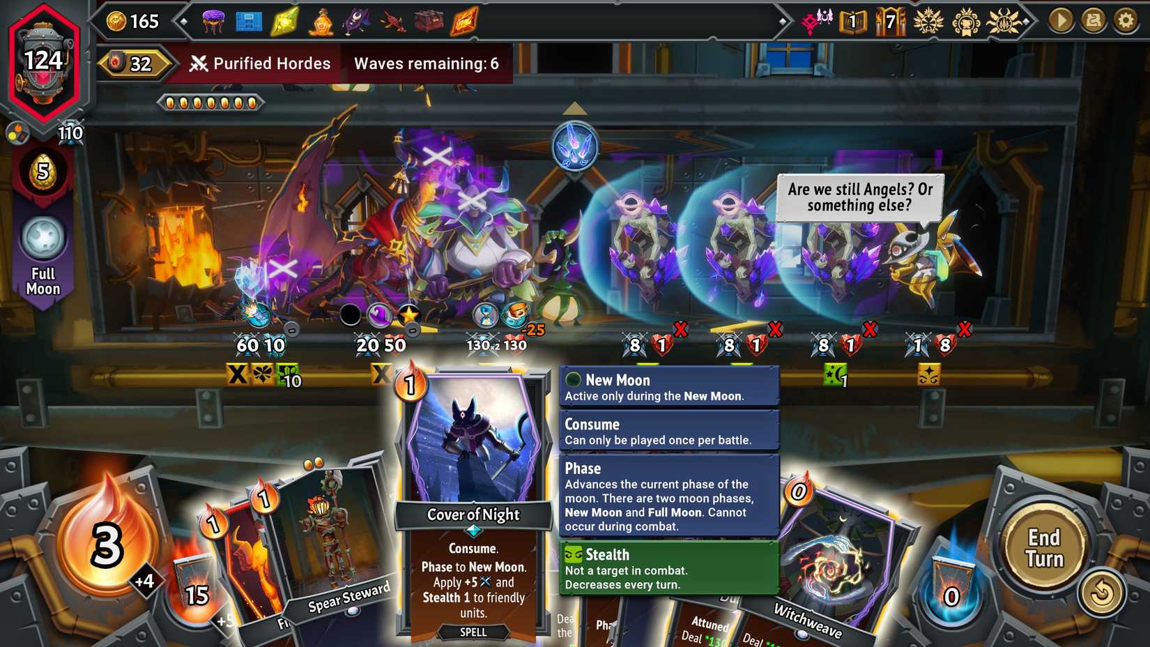 Además, Mecánica como estas aumentan el potencial de dominó del juego. Por ejemplo, hay una unidad que agrega valor (un nuevo efecto de estado que aumenta el ataque y, a veces, armadiza cada giro) cada vez que un aliado equipa cualquier elemento. El campeón de FEL puede potencialmente ganar una pila permanente de valor cada vez que una unidad gana valor. Que se traduce en: equipo de engranaje, valor buff, luego permanente Valor Buff, y eso está en cada paso. Las unidades solo pueden contener una pieza de equipo a la vez, pero la nueva facción de la Liga de Lazarus presenta una citación especial que renuncia a las tarjetas de equipos temporales en la muerte, dejándote muchos juguetes para jugar.