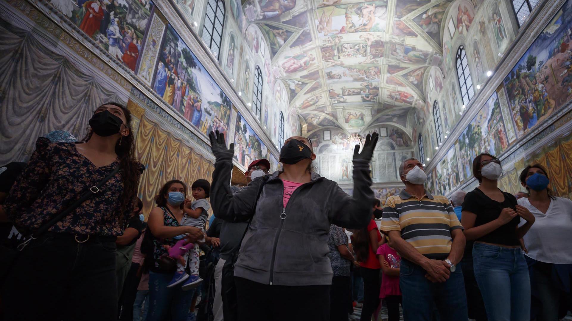 CIUDAD DE MÉXICO – Una monumental réplica del exterior y el interior de la Capilla Sixtina del Vaticano abrió este jueves sus puertas al público en el céntrico Zócalo de la Ciudad de México, donde desde la inauguración no han parado de llegar cientos de visitantes.