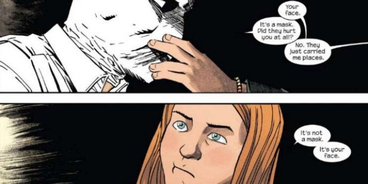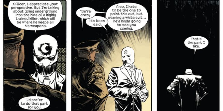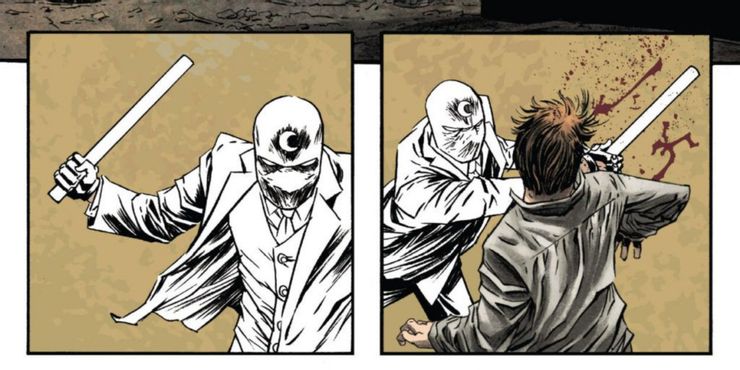 El Sr. Knight en realidad puede hablar con otras personas, lo que significa que es mucho más probable que arregle las cosas diplomáticamente. Moon Knight es mucho más distante y, lo que es más importante, Moon Knight es notoriamente uno de los héroes más violentos de Marvel, es particularmente recordado por cortar brutalmente la cara de un hombre una vez. Eso hace que cualquier otra cosa no parezca tan aterradora.