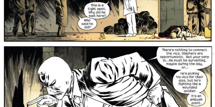 La gente normalmente no recuerda esto, pero Moon Knight es sorprendentemente inteligente. Sin embargo, es como el Sr. Knight que puede usar su inteligencia al máximo. Al igual que un antiguo villano de Moon Knight, “The Profile”, el Sr. Knight aparentemente también tiene su propia habilidad de “Sherlock Scan”.