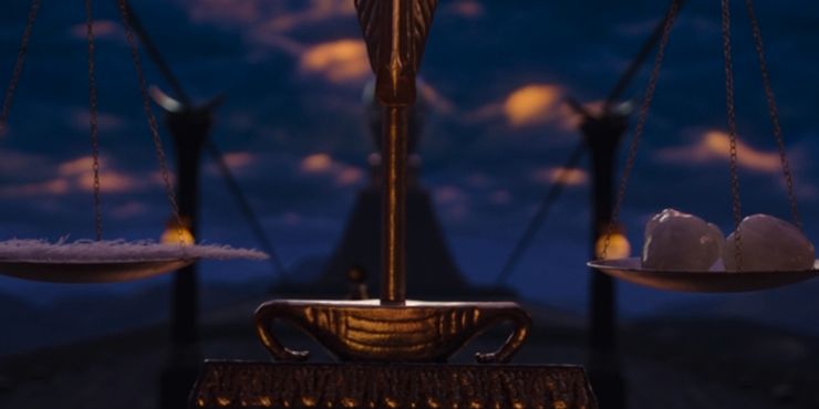 Sin embargo, la Pluma de la Verdad egipcia no pesa un corazón simplemente en función de cuántas malas acciones cometió alguien en la vida. Los egipcios creían firmemente en la armonía y la gratitud por la vida que vivían. Marc solo podía atravesar la Puerta de Osiris sin que existiera la mano protectora de Steven para protegerlo de los aspectos más feos y vergonzosos de su vida. Por lo tanto, con Marc siendo completamente capaz de enfrentar tanto lo bueno como lo malo, y por lo tanto capaz de comenzar el proceso de perdonarse a sí mismo, la balanza está equilibrada.