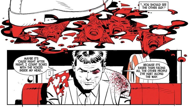 En un cuento de Benjamin Percy, David Pepose, Patch Zircher, Leonardo Romero, Vanesa Del Rey y Chris Sotomayor en Moon Knight: Negro, Blanco y Sangre #2, Mark Spector reflexiona sobre su trabajo como Moon Knight y cómo lo hace sentir. Sentado en una mesa de comedor con sus múltiples personalidades (que solo él puede ver), Marc habla sobre cómo lo ha hecho sentir ser el puño de venganza de Khonshu. Admite que viste de blanco para ver la sangre en sus manos y que se siente culpable por el dolor que ha causado. De hecho, si tuviera la oportunidad, dejaría de ser Moon Knight y se alejaría por completo de esa parte de su vida.