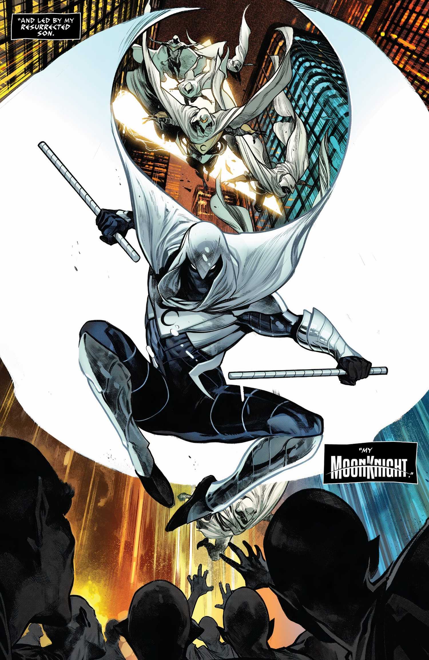 Caballero de la Luna ha regresado al Universo Marvel con un nuevo poder alucinante. Marc Spector abandonó recientemente la tierra de los vivos y pasó la Misión de Medianoche a Hunter’s Moon, Tigra, Reese y el resto. Recientemente, en las páginas de caza de sangre,Los vampiros de la Tierra bloquearon el sol e instigaron un levantamiento. En el cuarto número, sus planes se ven seriamente frustrados cuando Moon Knight aparentemente regresa de entre los muertos.