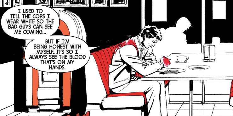 La decisión de Moon Knight de usar nada más que blanco generalmente se ve como una decisión audaz, que subraya su naturaleza violenta e impredecible, pero hay una razón más profunda y trágica por la que viste de blanco: para que pueda ver toda la sangre en su mano.