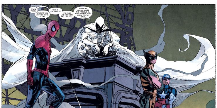 En la carrera de Brian Michael Bendis en el sexto volumen de Caballero de la Luna, el personaje principal está acompañado por sus compañeros Vengadores, Capitán América, Wolverine y Spider-Man. Sin embargo, poco después de la historia se revela que estos tres compañeros no son más que personalidades separadas en la mente de Marc, tomando la forma de los tres héroes que más admira.
