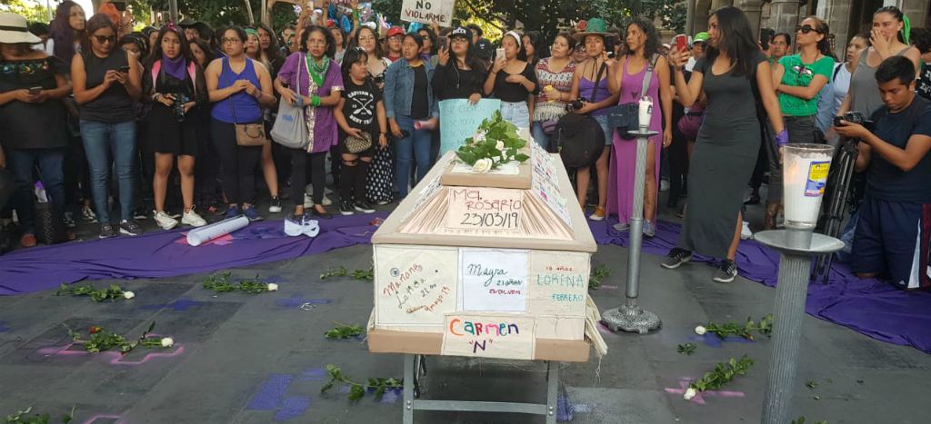 Minutos después, arribó la procesión con el féretro intervenido con los nombres bordados de las 108 víctimas de feminidicios ocurridos en 2019 y en lo que va del 2020.