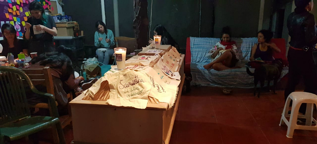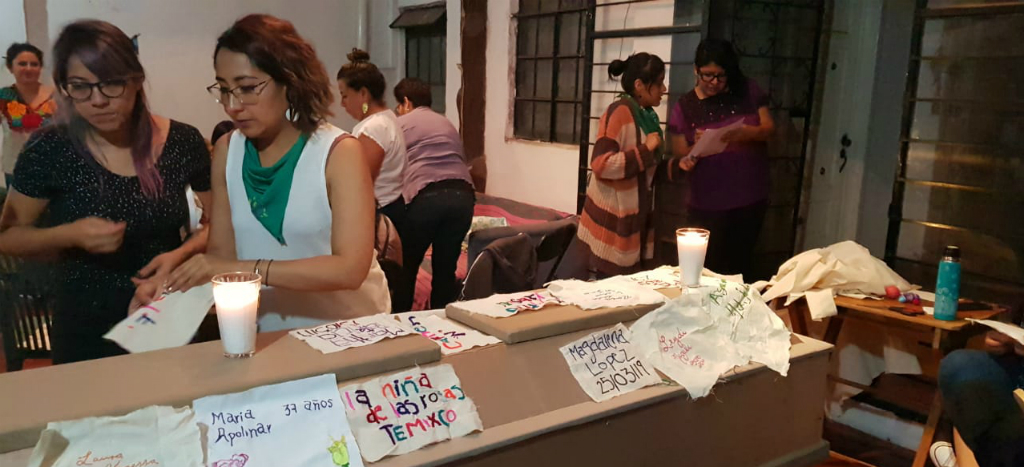 En Morelos, mujeres iniciaron la Jornada del Día Internacional de la Mujer con un funeral simbólico donde bordaron toda la madrugada de este domingo parches con nombres de las 108 niñas y jóvenes víctimas de femincidio, en lo que va del sexenio del gobernador de Morelos, Cuauhtémoc Blanco Bravo, para intervenir un ataúd que será parte de una procesión y marcha que se realizará la tarde de este domingo para exigir un alto a la violencia de género y feminicidios.