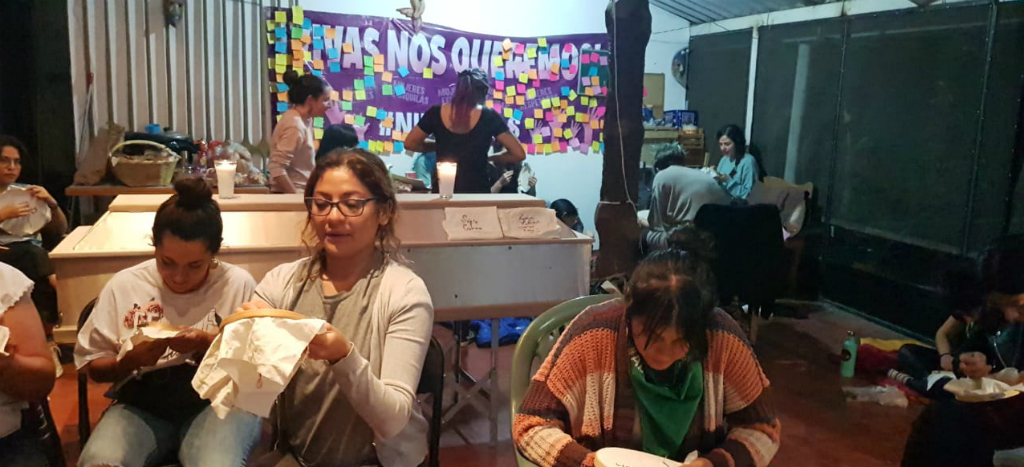 Mientras bordaban de fondo se escuchaba música feminista, entre ellas “Sin Miedo” (canción que Mon Lafarte interpretó en el Zócalo de la Ciudad de México como parte del festival Tiempo de Mujeres 2020).