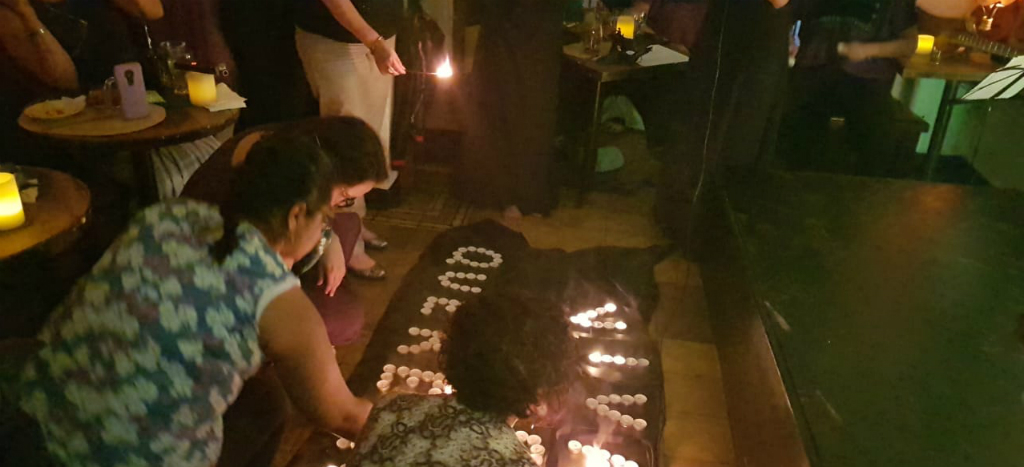 Con un aquelarre feminista (reunión nocturna de brujas) bajo el nombre “Florecemos en todos los rincones”, jóvenes artistas realizaron un performance para retratar las violencias que las mujeres enfrentan diariamente desde la más sutil hasta una violación o un feminicidio.