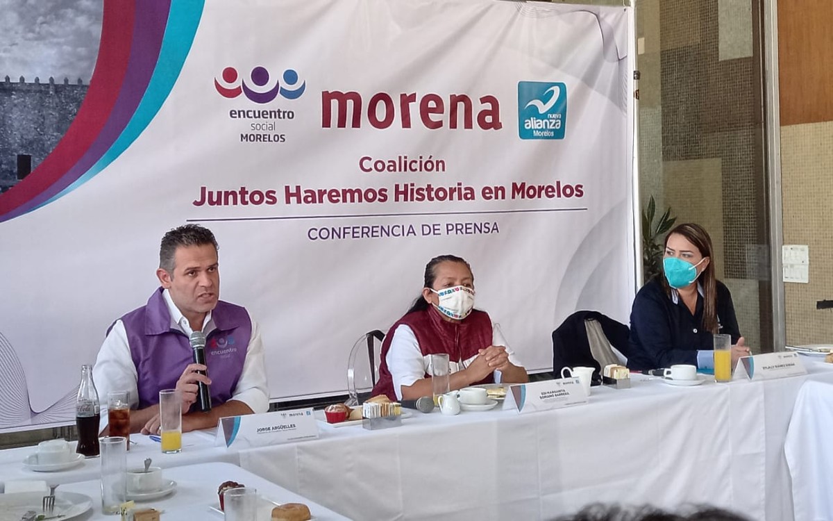 Seis comunicadores han fallecido a causa de la Covid-19 en Morelos; durante el evento, el presidente del PES en esa entidad, Jorgue Arguelles, se retiró el cubrebocas para que su voz se escuchara bien.