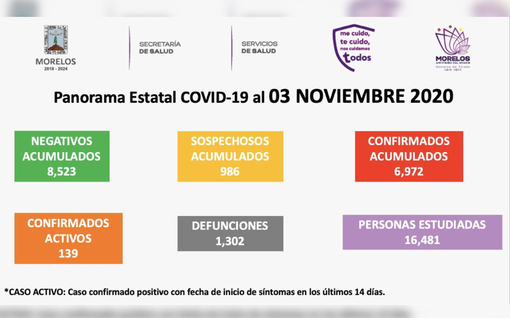 También dio a conocer que a través del proyecto Pruebas Covid en tu Comunidad se han tomado 1 mil 75 muestras, de las cuales 42 han salido positivas en los municipios de Amacuzac, Atlatlahucan, Ayala, Cuautla, Cuernavaca, Huitzilac, Jiutepec, Jojutla, Jonacatepec, Miacatlán, Puente de Ixtla, Temixco, Tepalcingo, Tepoztlán, Tetela del Volcán, Tlaquiltenango, Xochitepec, Yautepec y Yecapixtla.