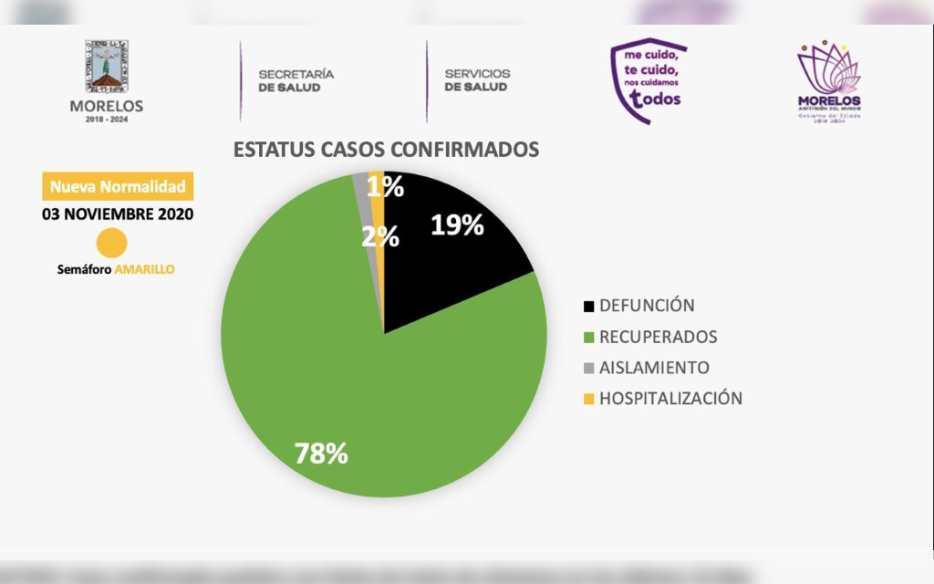 La Secretaría de Salud de Morelos reportó que en las últimas 24 horas se registró el contagio de coronavirus en 16 personas y el fallecimiento de otras ocho por Covid-19.