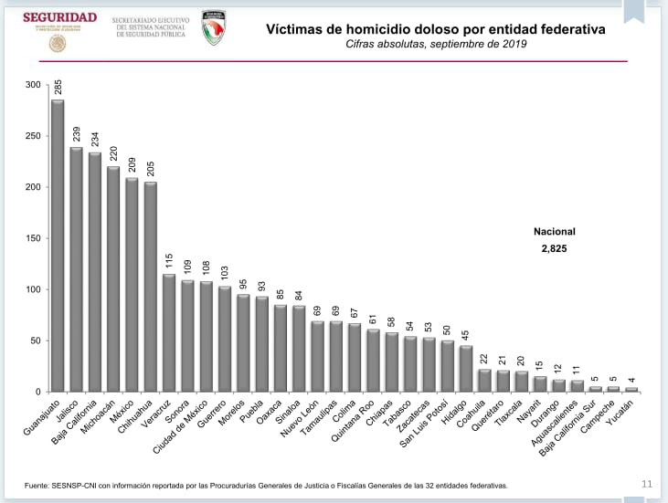 En cuanto al delito de homicidio doloso, en cifras absolutas Morelos ocupó en septiembre el lugar 11 a nivel nacional, con 95 casos registrados.