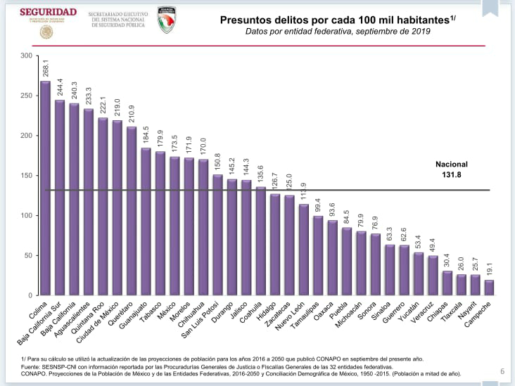 En la tasa de incidencia delictiva por cada 100 mil habitantes, esta entidad se posicionó en el cuarto lugar, solo detrás de Chihuahua, Baja California y Colima, al duplicar con 4.7 casos la tasa nacional que es de 2.2 por cada 100 mil habitantes.
