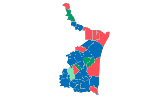 En la geografía estatal, y de confirmarse los resultados, el PAN gobernará 27 municipios, donde destaca Tampico, San Fernando, González, El Mante, Tula, entre otros pequeños. El PRI tiene en la bolsa Guerrero, Abasolo, Jiménez y Güemez.