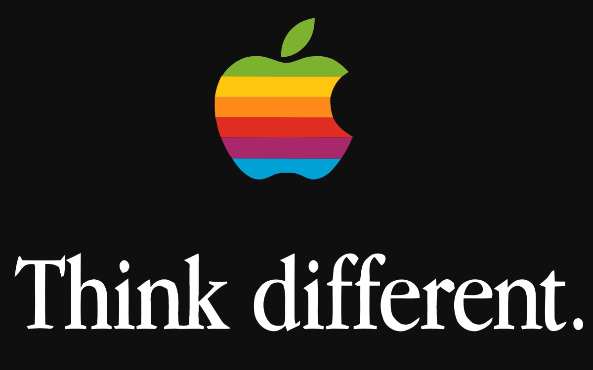 La campaña “Think Different” fue creada en 1997 por la agencia publicitaria TBWAChiatDay y fue utilizada en varios anuncios de televisión, así como en publicidades impresas de los productos de la compañía estadounidenses. Apple dejó de utilizar el eslogan en 2002 pero lo recuperó en otoño de 2009 para incluirlo en las cajas de los iMacs de 21,5″ y 27″.