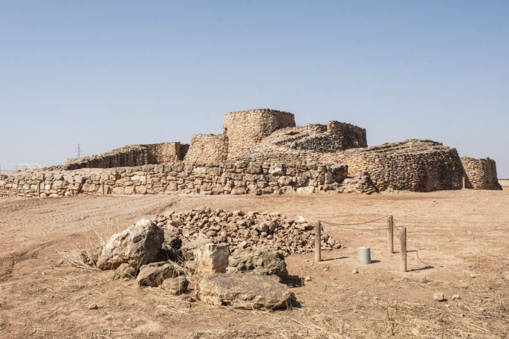 En Ciudad Real denominan motillas a unas elevaciones artificiales, creadas entre los años 2200 y 1300 a. C., que se alzan en un espacio completamente llano. En la actualidad hay identificadas 46, pero se conocen muy pocas sin prácticamente alteraciones de posteriores culturas, entre ellas, la más importante, la del Azuer. Ocupa una hectárea y se asemeja, en la lejanía, a un castillo medieval, con una imponente torre que supera los 11 metros de altura. Está formada por un laberinto de muros de piedra calcárea que protegían sus dos grandes tesoros: los silos para los cereales y las legumbres ―se han hallado una decena con una capacidad media de seis metros cúbicos cada uno― y un gigantesco pozo de forma trapezoidal de casi 20 metros de profundidad, catalogado como el más antiguo de la Península y posiblemente de Europa. En los años lluviosos, esta inmensa excavación se llena en su totalidad. Los potentes muros de la construcción resisten ―cuatro milenios después― la gigantesca presión de millones de litros de agua.