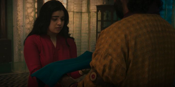 Sra. maravilla ha mostrado el brazalete de Kamala dándole visiones en el pasado, pero lo que le sucede al final de Sra. maravilla El episodio 4 se siente y se ve diferente a todo lo visto hasta ahora. Cuando Najma ataca a Kamala directamente, Kamala desvía el golpe con su brazalete y de repente se ve envuelta en una escena completamente nueva en la estación de tren con el último tren a Karachi saliendo durante la Partición de la India. Lejos de parecer una visión, parece como si Kamala hubiera viajado en el tiempo en Sra. maravilla episodio 4
