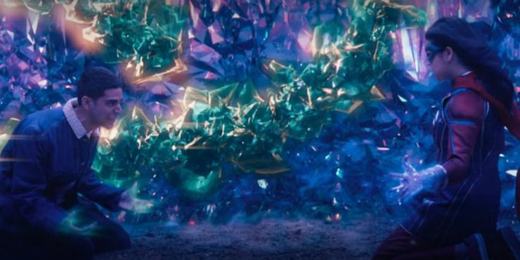En lo que parece ser una demostración de poderes muy parecida a la de Kamala en los cómics, Sra. maravillaEl final de tiene una escena posterior a los créditos donde su brazalete comienza a fallar y hace que la arrojen a su armario. Carol Danvers (Brie Larson), también conocida como Capitana Marvel, de aspecto confundido, sale en lugar de Kamala. Si bien Kamala tradicionalmente tiene habilidades para cambiar de forma en los cómics, nada en la serie hasta ahora da crédito a la idea de que ha adquirido esta habilidad. El hecho de que Carol no esté usando el disfraz o el brazalete de Kamala, y no parezca sorprendida por su apariencia, también hace que parezca que Kamala no cambió de forma aquí.
