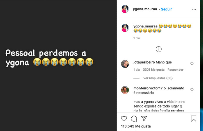 “Perdimos a Ygona”, dice un mensaje publicado en Instagram el pasado jueves.