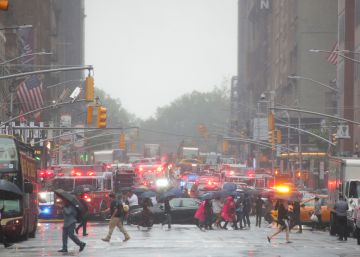 Equipos de emergencias acuden al edificio de Manhatatan en el que se ha estrellado un helicóptero. Brendan McDermid