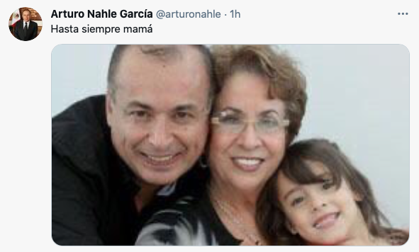 María Elena García Herrera, madre de la secretaria de Energía, Rocío Nahle García, así como del presidente Tribunal Superior de Justicia del Estado de Zacatecas (TSJEZ), Arturo Nahle García, murió este miércoles por Covid-19.