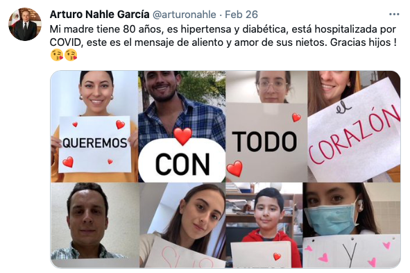 María Elena García Herrera tenía 80 años, padecía hipertensión y diabetes, y se encontraba hospitalizada desde hacía varios, días según dio a conocer vía Twitter, su hijo Arturo.