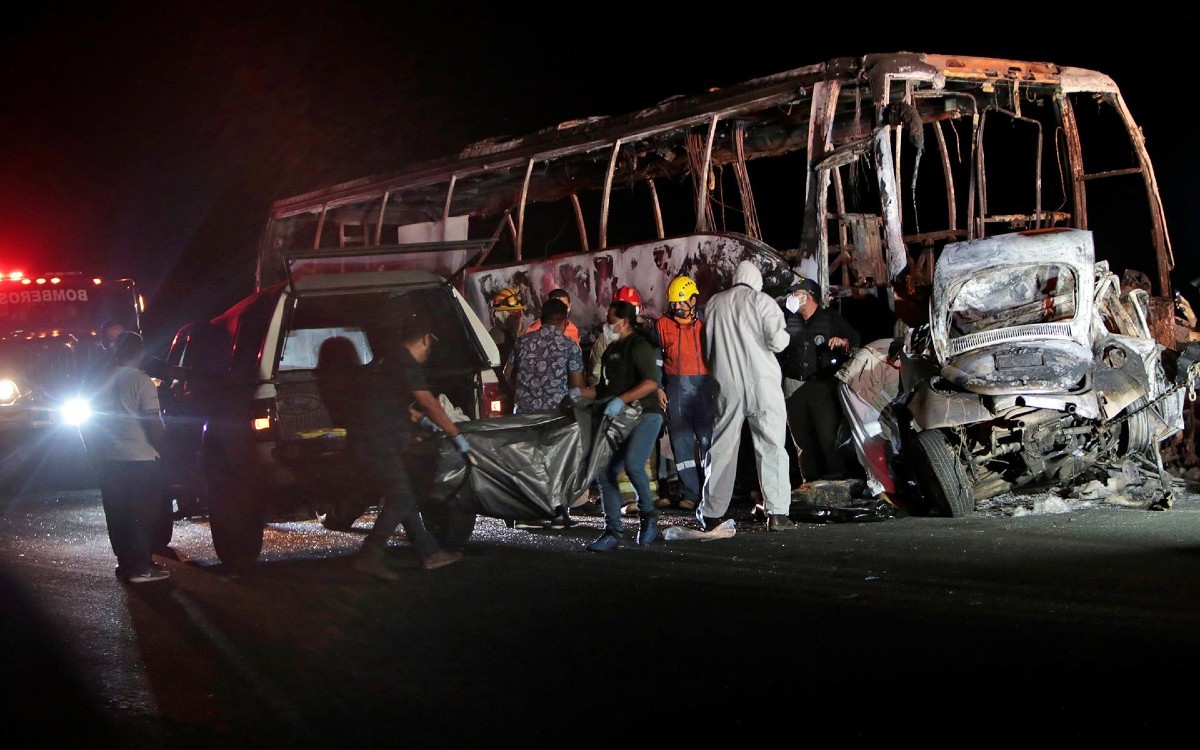 Al menos dos personas murieron calcinadas luego de que un autobús en el que viajaban estudiantes de la normal rural Raúl Isidro Burgos de Ayotzinapa, chocó contra un vehículo compacto sobre la carretera nuevo libramiento a Tixtla en el kilómetro 17, en Guerrero.