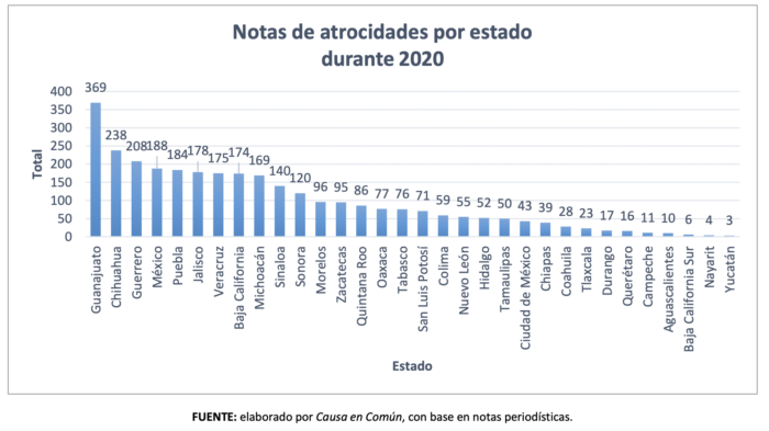 Guanajuato fue el estado donde más atrocidades se registraron, seguido por Chihuahua, Guerrero, México, Puebla, Jalisco y Veracruz.