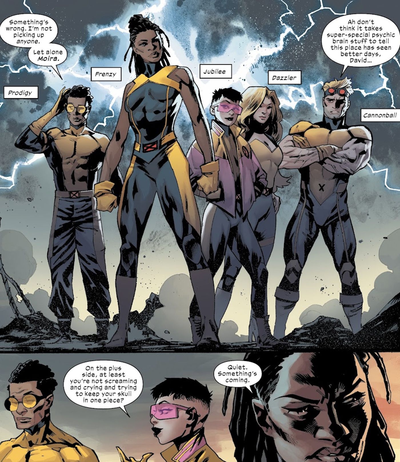 David fue uno de los mutantes elegidos para formar el nuevo equipo de X-Men en la Hellfire Gala del año pasado. De todos los mutantes elegidos, incluidos Dazzler, Cannonball, Jubilee, Juggernaut, Talon y Sync, Prodigy es el único miembro que no ha servido previamente como X-Man oficial. Pero antes de que este nuevo equipo pudiera tener siquiera un minuto para disfrutar de su selección, fueron asesinados en un ataque coordinado a la Gala llevado a cabo por la organización antimutante Orchis. Moira fue una aliada clave de Orchis en este ataque, traicionando a la nación de Krakoa que ella ayudó a fundar.